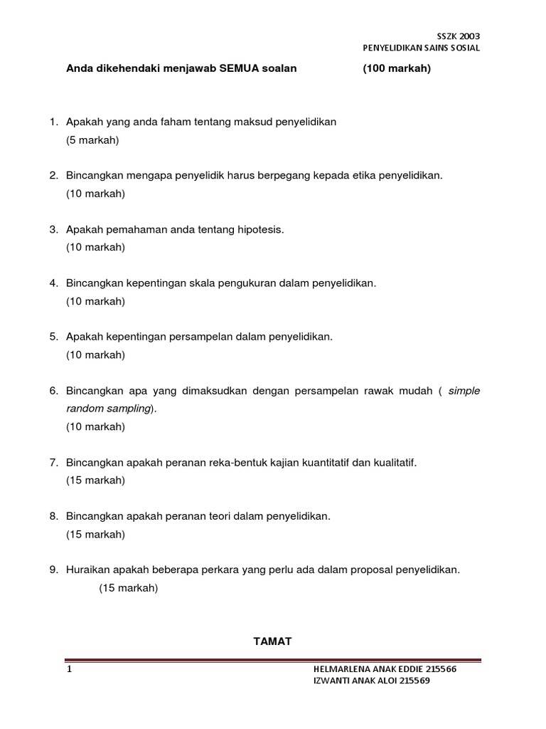 Soalan Penyelidikan Sosial Pdf