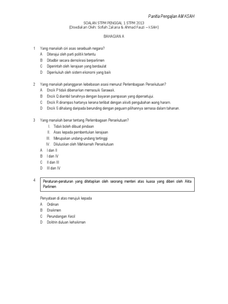 . KOLEKSI SOALAN STRUKTUR PENGGAL 1 2013 - 2020 Tahun 2013. Perlembagaan United Kingdom D. Koleksi Soalan Percubaan Pengajian Am Penggal 1 STPM Semester 1.