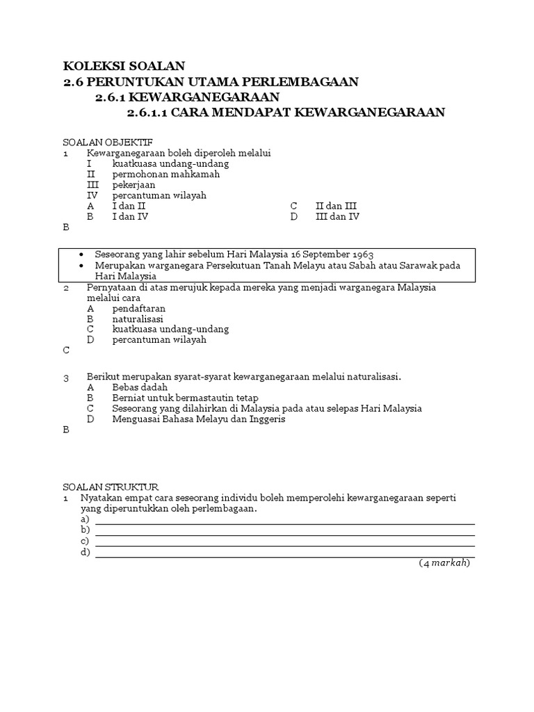 Soalan Objektif Perlembaagaan Pengajian Am Dengan Jawapan